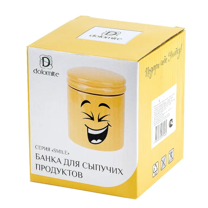 Банка для сыпучих продуктов Smile предназначена для хранения круп, сахара, специй и других сухих ингредиентов. Изготовлена из керамики, изделие отличается функциональностью и декоративным дизайном с изображением смайлов.