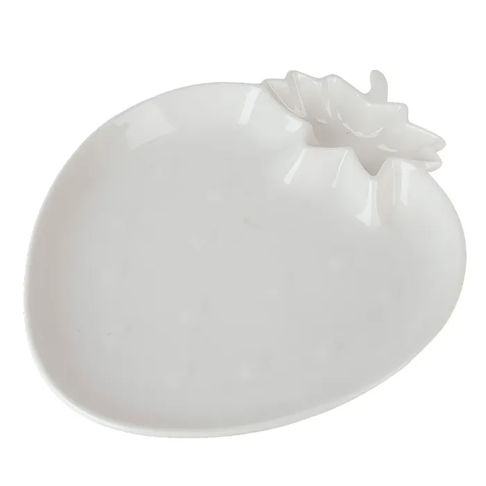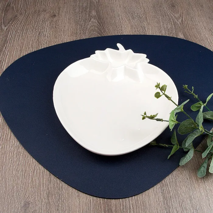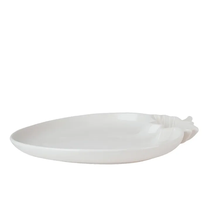Блюдо выполнено из фарфора, материала, известного прочностью и гигиеничностью. Поверхность имеет белое покрытие. Фигурная форма является декоративным элементом дизайна.