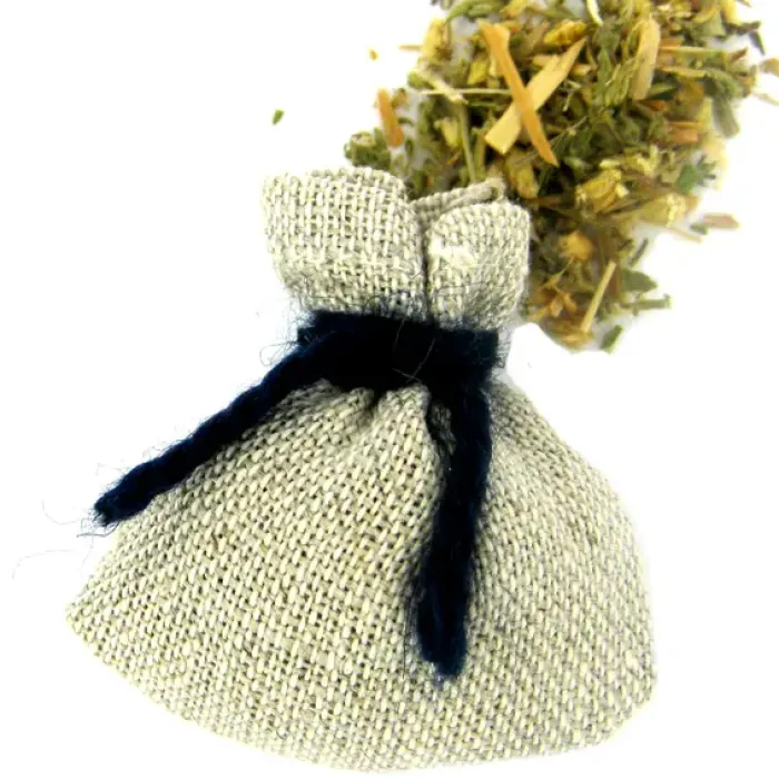 - Мешочек изготовлен из 100% льна с шерстяной нитью, что делает его экологически чистым и безопасным для использования.