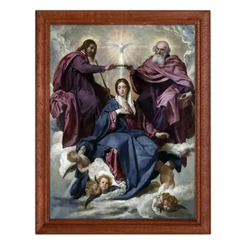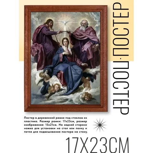 Постер в рамке с репродукцией картины Диего Родригеса де Сильвы и Веласкеса 'Коронование Девы Марии' станет изысканным элементом декора для любого пространства. Он идеально подходит для оформления салонов, магазинов, офисов, кафе и жилых помещений.