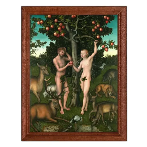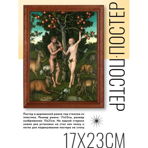 Эта репродукция картины Лукаса Кранаха I «Адам и Ева» (1526) станет стильным акцентом в любом интерьере. Она идеально подходит для декорирования салонов, магазинов, офисов, кафе и жилых помещений. Основные особенности: