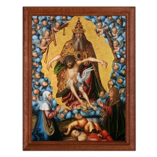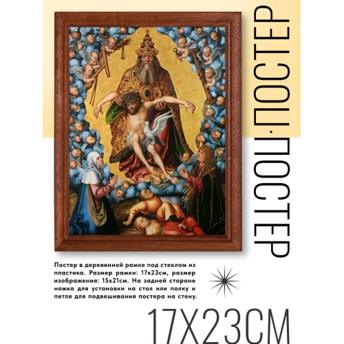 Постер в рамке «Святая Троица» (1515) работы Лукаса Кранаха — это изысканное произведение искусства, которое привносит атмосферу гармонии и духовности в любое пространство. Репродукция выполнена с высоким качеством и оформлена в стильную деревянную рамку под пластиковым стеклом, что обеспечивает долговечность и защиту изображения.