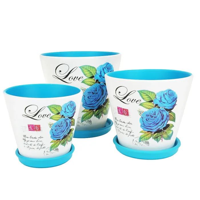 Горшки для цветов с поддонами, набор 3 шт. Индиго d=18/16/14 см h=17/14/12 см v=2300/1600/1000 мл