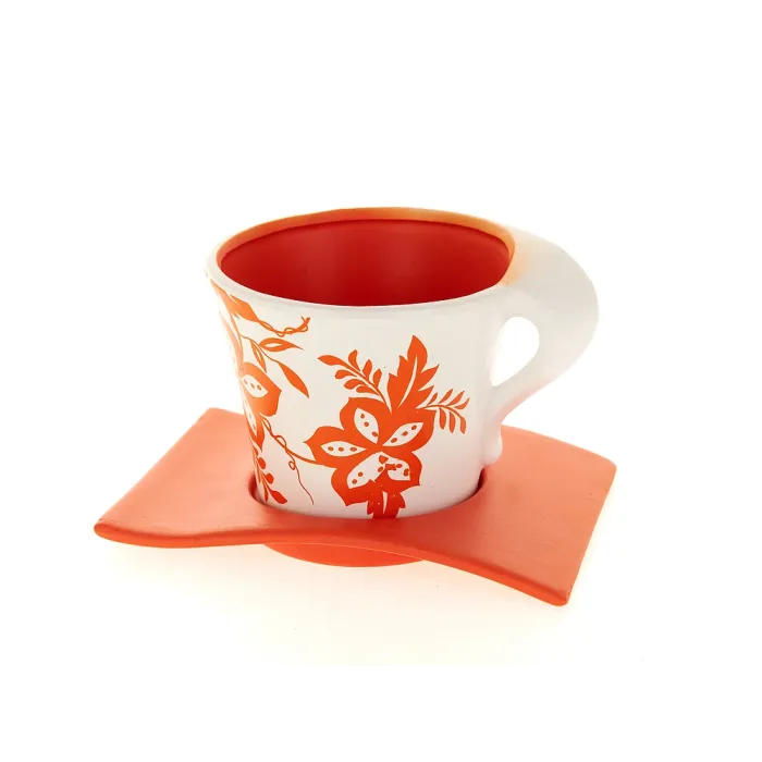 Керамический горшок для цветов с поддоном украшен ярким оранжевым узором. Предназначен для выращивания комнатных растений, он станет стильным акцентом в интерьере. Компактные размеры и удобная форма позволяют разместить его на подоконнике или полке.