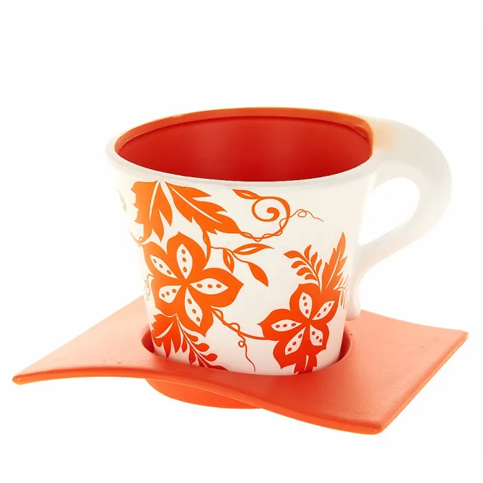 Горшок для цветов с поддоном диаметром 15 см и высотой 13,5 см предназначен для выращивания комнатных растений. Он выполнен из керамики и украшен ярким оранжевым узором с цветочным рисунком, что делает его стильным элементом интерьера.