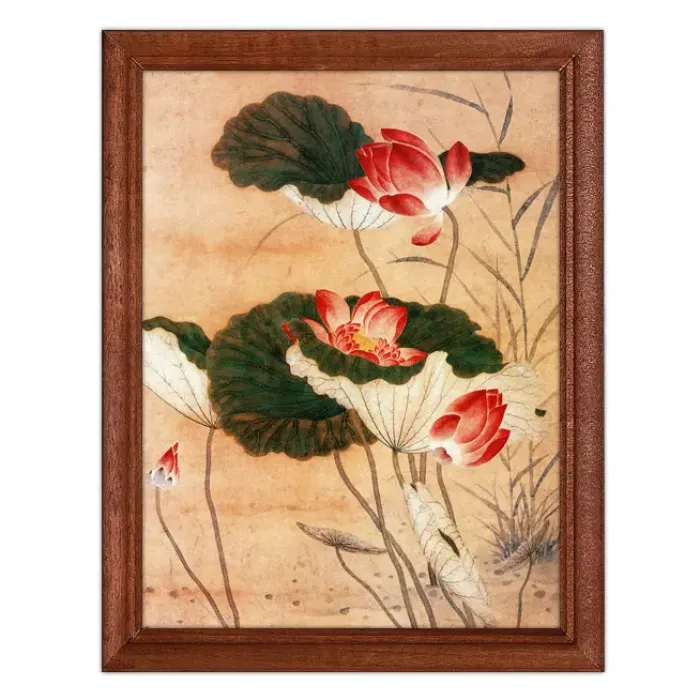 Постер в рамке с изображением лотосов от художника Wu Zhenwu. Назначение — интерьерный декор.