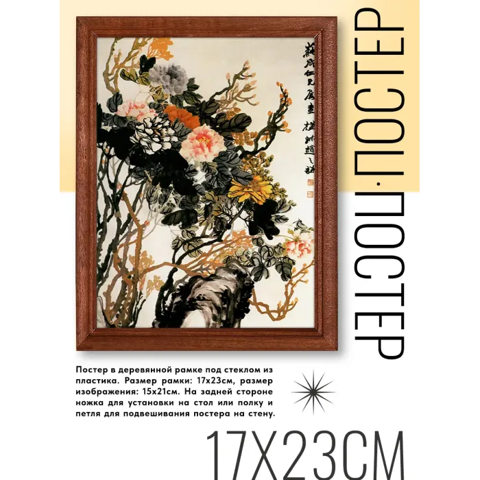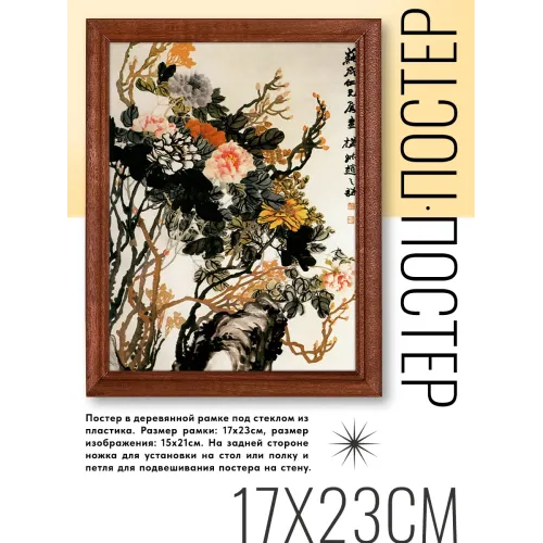 Постер в рамке 17х22см Zhao Zhiqian - Пионы (фрагмент) POSV-0191