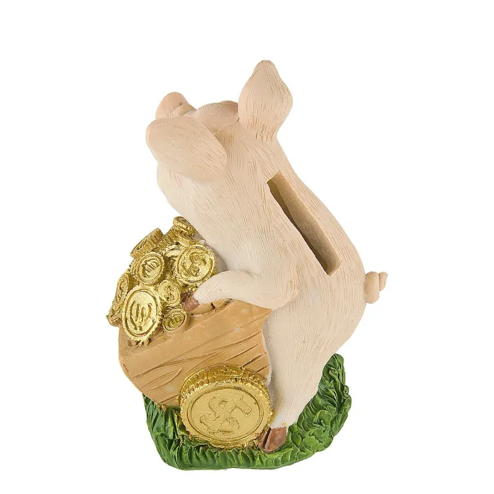 Декоративная копилка в виде поросенка предназначена для хранения монет и украшения интерьера. Изделие выполнено из полистоуна, что обеспечивает его прочность и долговечность.