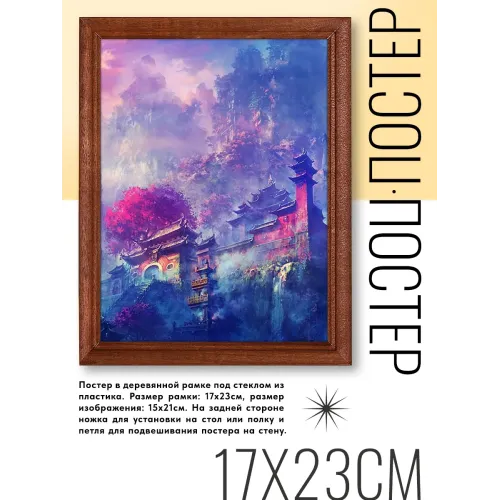 Постер в рамке для интерьерного декора. Деревянная рама с пластиковым стеклом, комплектуется ножкой и петлёй для установки.