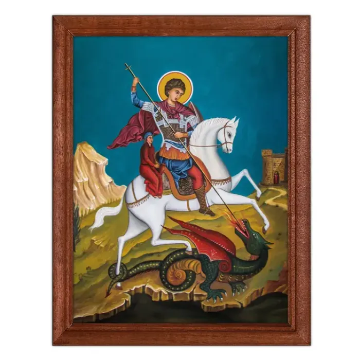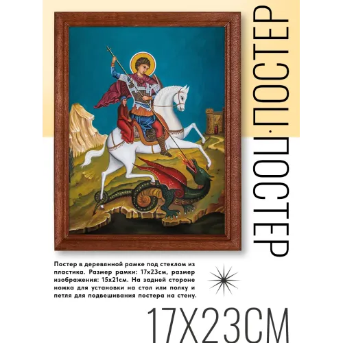 Постер в рамке с изображением Георгия Победоносца — это не просто элемент декора, а символ мужества и победы. Идеально подходит для оформления интерьеров салонов, магазинов, офисов и кафе. Основные особенности: