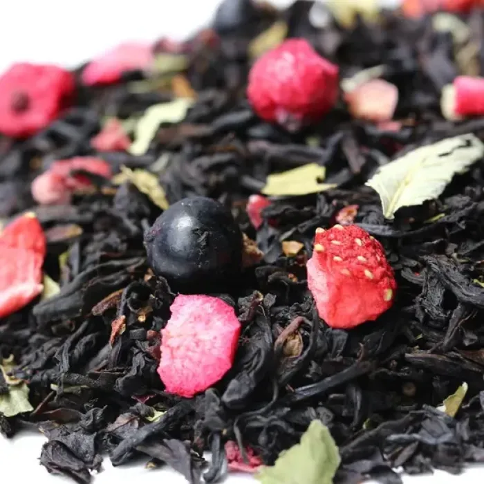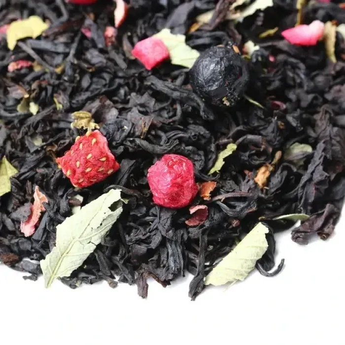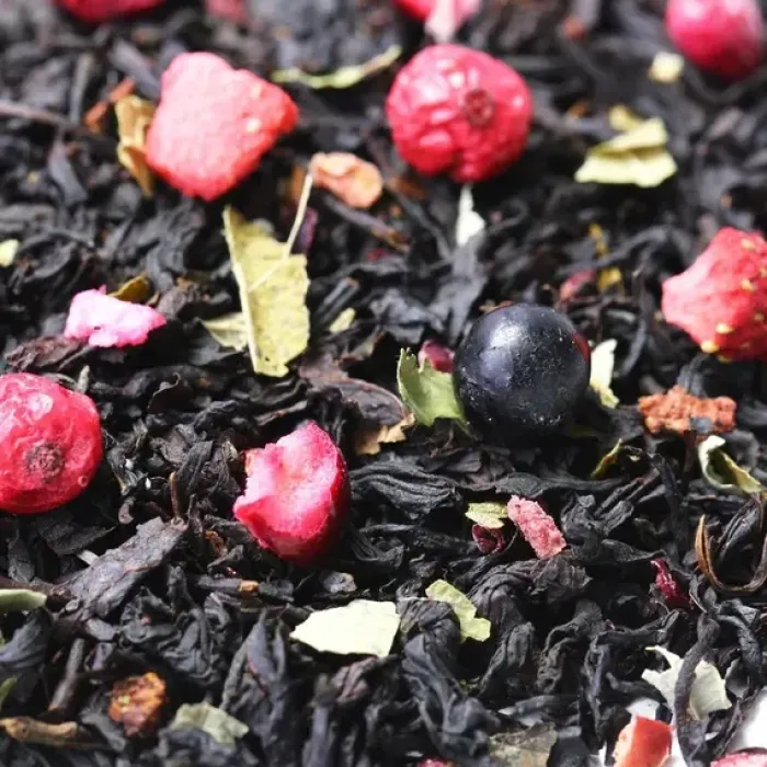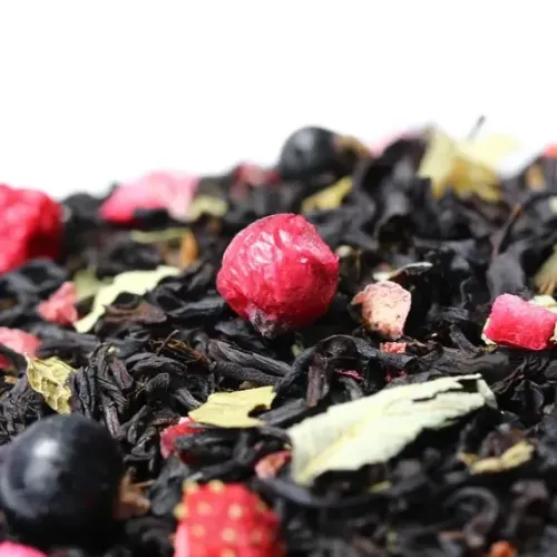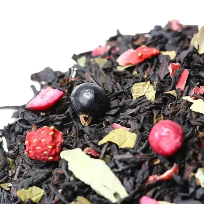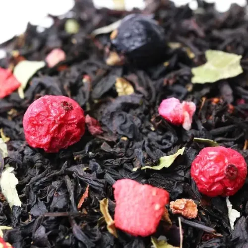 Этот купаж создан на основе индийского чёрного чая, обогащённого ягодами и фруктами. Настой получается глубоким и насыщенным, с яркими нотами чёрной смородины и дикой вишни, которые создают гармоничный ягодный букет.