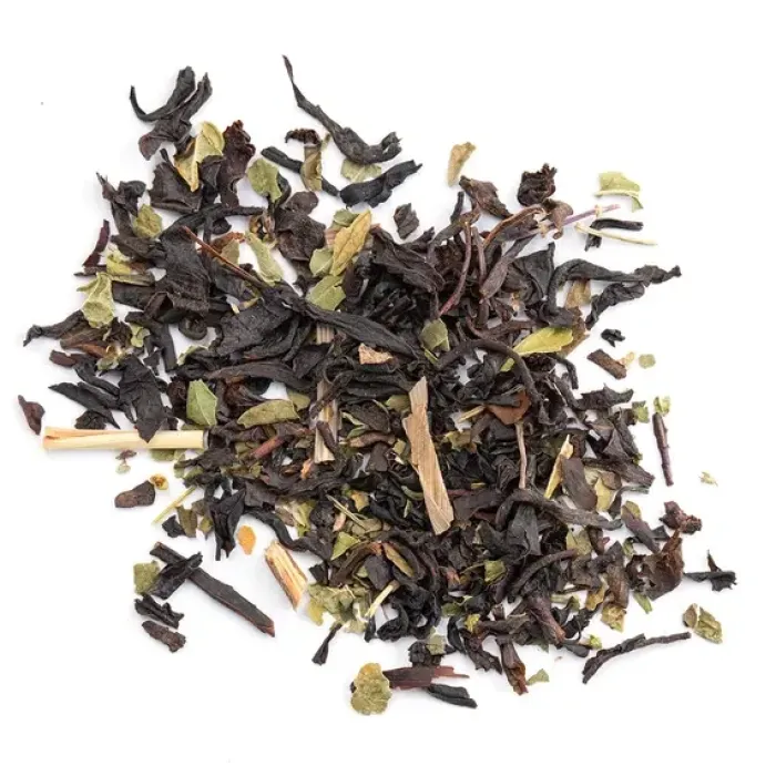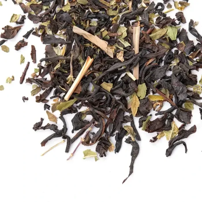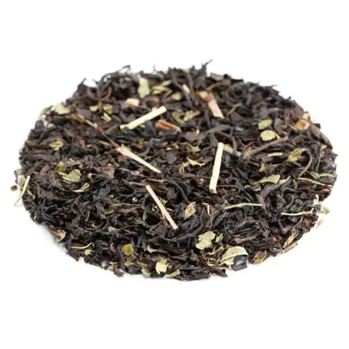 Состав: чёрный индийский чай, листья мяты, мелисса, лемонграсс, листья смородины, натуральный ароматизатор «лимон»