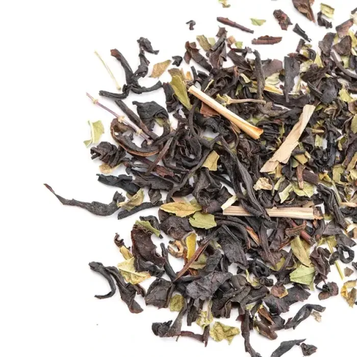 Этот купаж создаёт атмосферу летнего вечера, сочетая насыщенную основу индийского чёрного чая с прохладной свежестью мяты и мелиссы и цитрусовыми нотами лемонграсса. Вкус мягкий, с лёгкой терпкостью, а аромат наполнен мятой, мелиссой и лимонными оттенками.