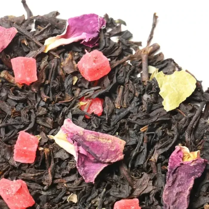 Тип: ароматизированный чёрный чай с кусочками фруктов и цветочными лепестками