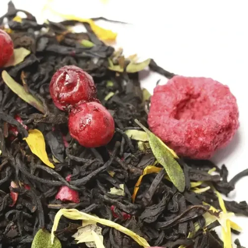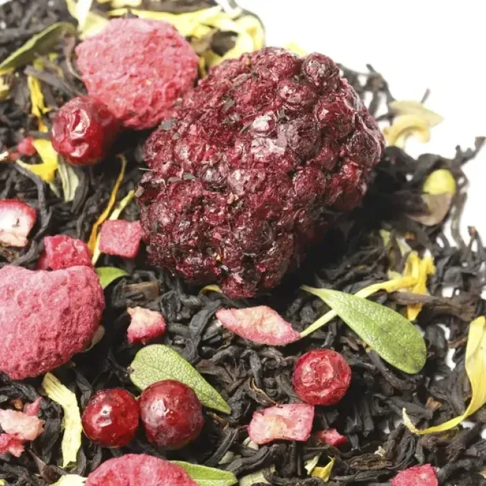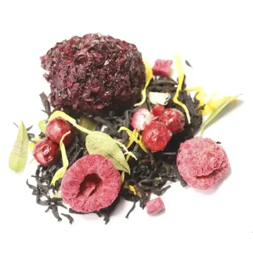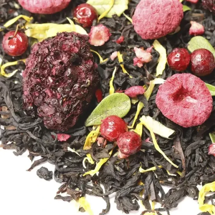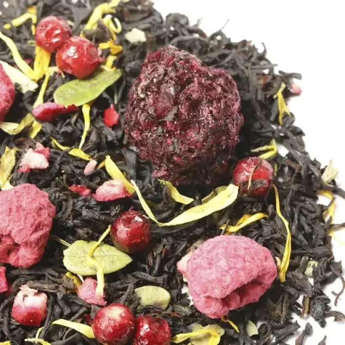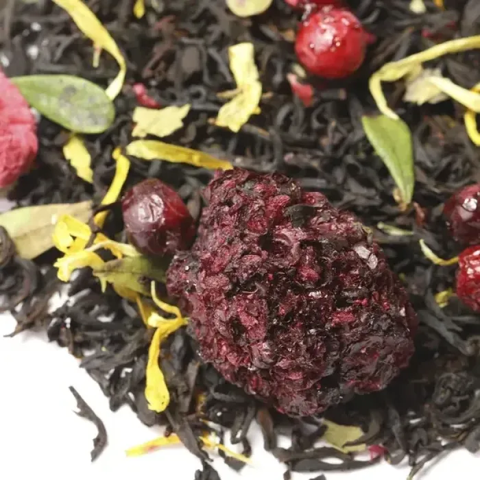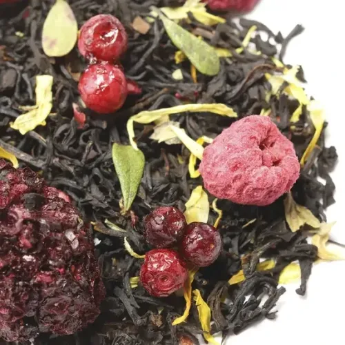 Крепкий индийский чай Ассам, обогащённый гармоничным букетом лесных ягод. Насыщенный настой сочетает сладость малины и ежевики с освежающей кислинкой брусники и клюквы, а лепестки календулы придают изысканную цветочную ноту.