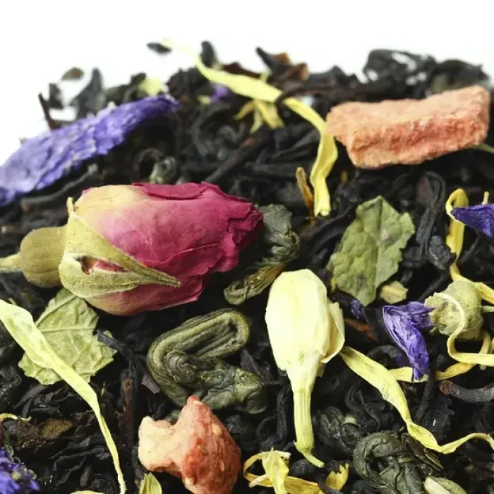 Тип: Ароматизированная смесь чёрного и зелёного чая с цветами, ягодами и фруктами