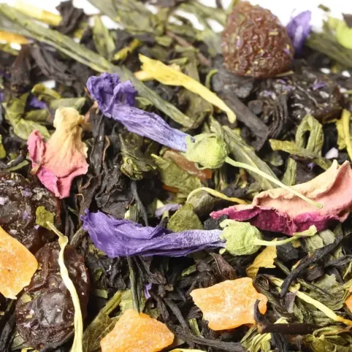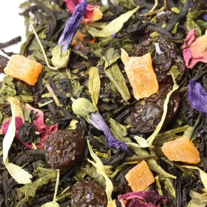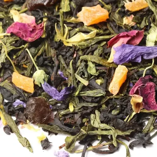 Тип: Ароматизированная смесь чёрного и зелёного чая, крупнолистовой с добавками