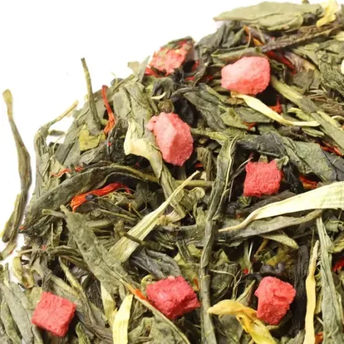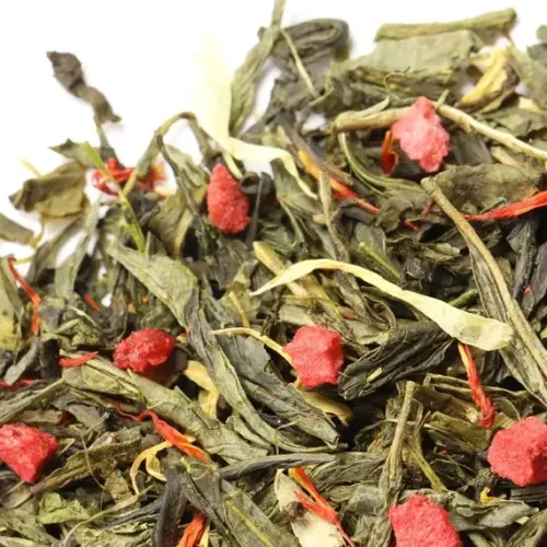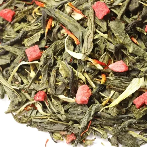Зеленый ароматизированный чай Клубника со сливками 500 гр