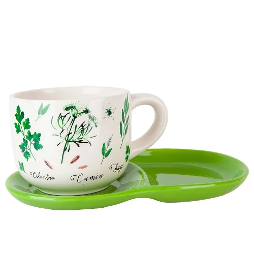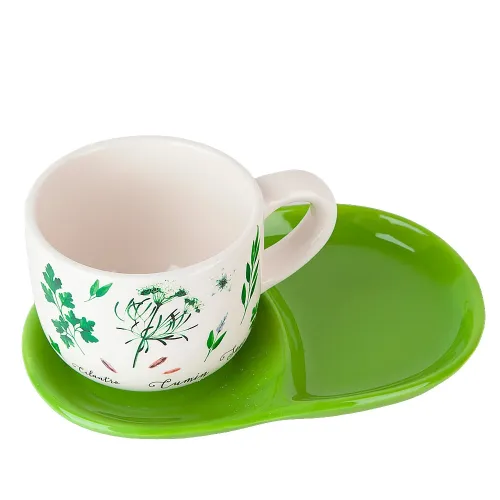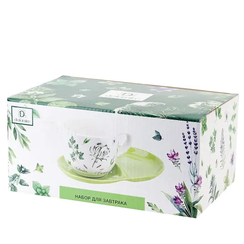 Набор для завтрака «Душистые травы» предназначен для сервировки чая или кофе. В комплект входят чашка и блюдце из керамики, выпущенные под торговой маркой Dolomite.