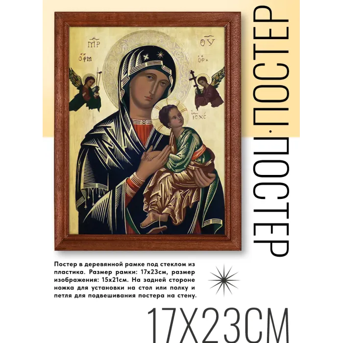 Постер в рамке с изображением Божьей Матери и Иисуса — это не просто декор, а символ духовности и веры. Он станет прекрасным дополнением интерьера, наполняя пространство атмосферой умиротворения.