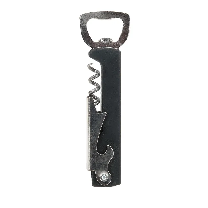 Конструкция совмещает два инструмента: открывалку для бутылок и штопор. Металлические рабочие элементы обеспечивают прочность, а пластиковая ручка — удобный хват. Изделие допускает мытье в посудомоечной машине.