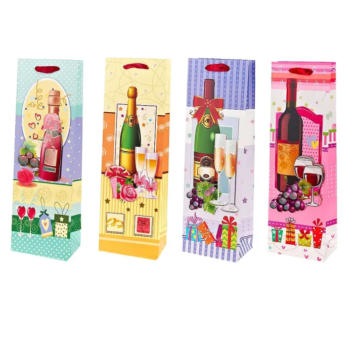 Подарочный пакет 3D предназначен для упаковки бутылки. Ламинированная поверхность с накладными деталями создаёт объёмный эффект, а текстильные ручки облегчают переноску.