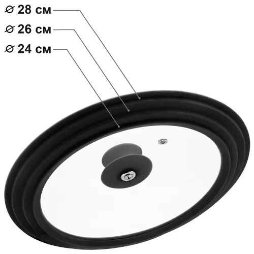 Универсальная крышка торговой марки Appetite предназначена для использования с кастрюлями и сковородами. Её конструкция позволяет заменить три отдельные крышки для посуды диаметром 24, 26 и 28 сантиметров.
