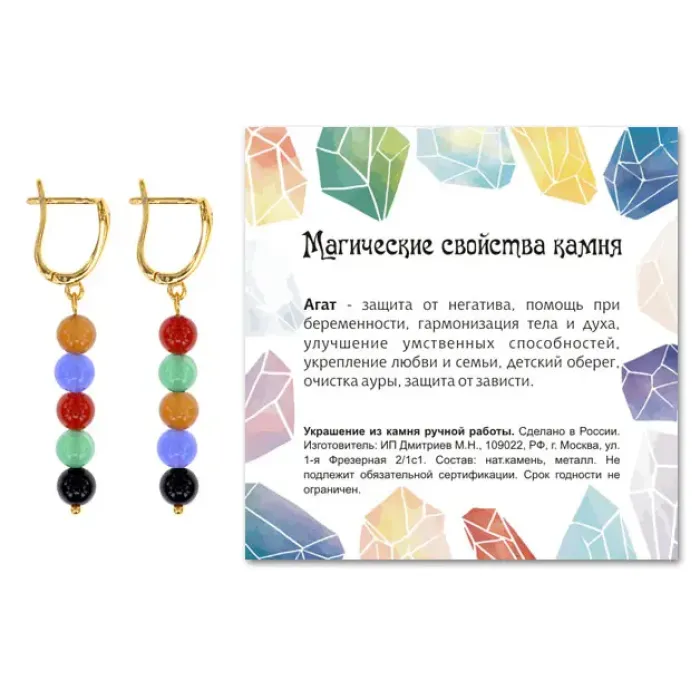 - Упаковка включает прозрачный пакет с подвесом и вкладыш с описанием значения камня, что делает серьги отличным подарком.
