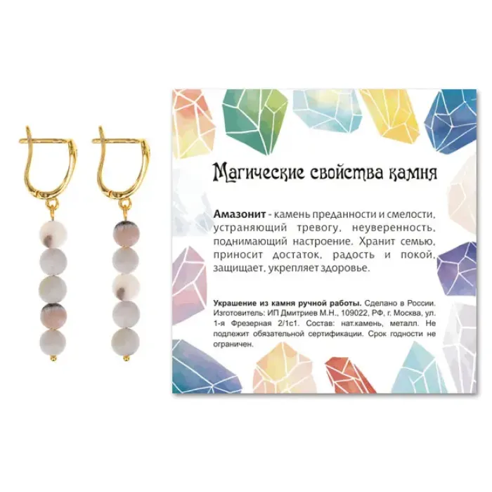 - Каждая пара упакована в прозрачный пакет с подвесом и укомплектована вкладышем с описанием значения камня, добавляя элемент образовательности к покупке.