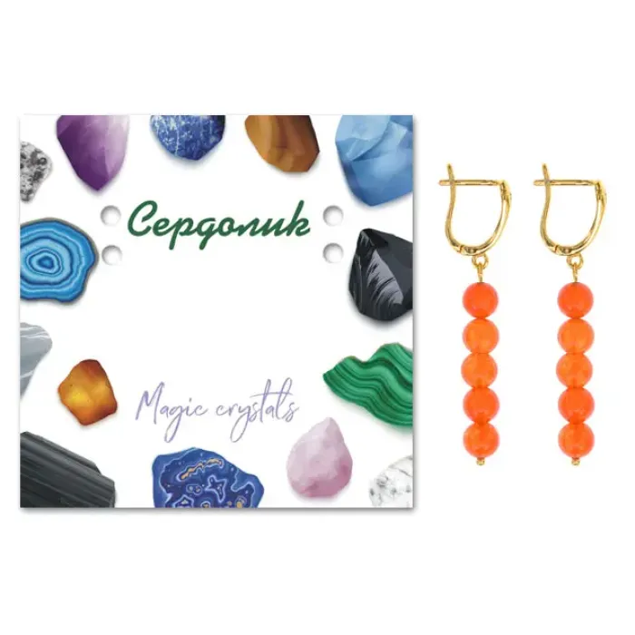 Серьги ручной работы из натурального камня сердолик с фурнитурой под золото.