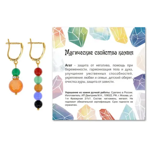 Асимметричные серьги ручной работы, выполненные с использованием качественной корейской фурнитуры и натурального камня Агат. Эти уникальные украшения не только подчеркивают индивидуальность, но и символизируют гармонию и защиту. Длина серег составляет 40 мм и 50 мм (включая швензы), а диаметр бусин — 6 мм и 10 мм. Фурнитура изготовлена из бижутерного сплава с прочным покрытием под золото, что обеспечивает долговечность изделия. Серьги упакованы в прозрачный пакет с подвесом и укомплектованы вкладышем с описанием значения камня, что делает их отличным подарком для близких или для себя.