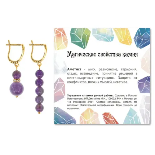 - Упаковка: прозрачный пакет с подвесом и вкладыш с описанием значения камня делают эти серьги идеальным подарком.