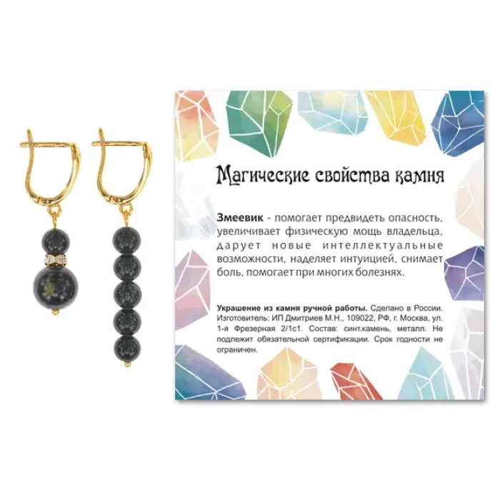 - Каждая пара упакована в прозрачный пакет с подвесом и укомплектована вкладышем с описанием значения камня, что делает их отличным подарком или сувениром.