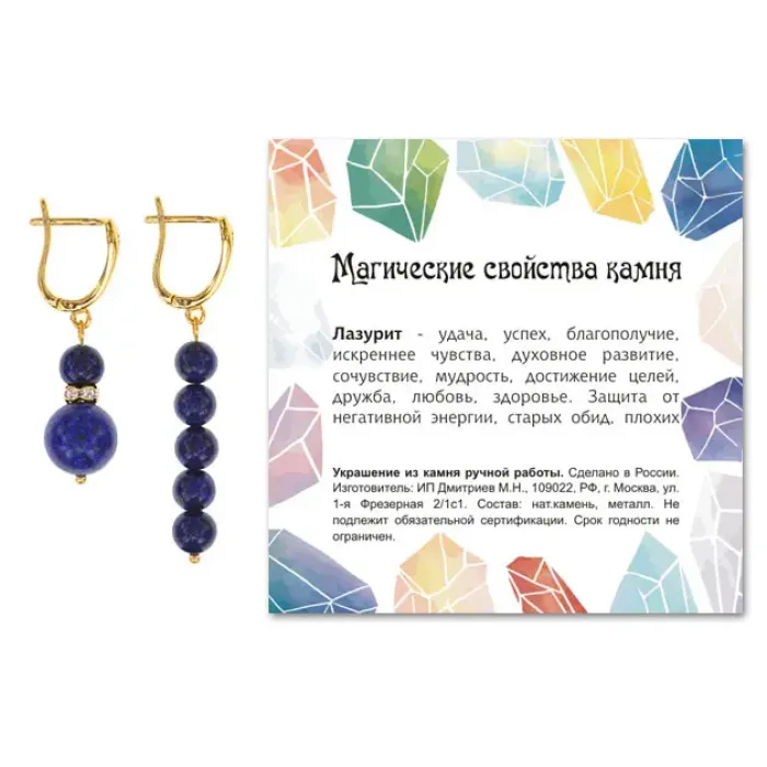 - Упаковка включает прозрачный пакет с подвесом и вкладыш с описанием значения лазурита.