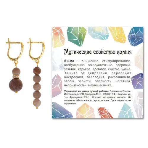 - Каждая пара упакована в прозрачный пакет с подвесом и укомплектована вкладышем с описанием значения камня, что делает эти серьги отличным подарком для близких.