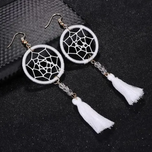 Серьги в виде ловца снов с кисточкой, цвет белый.