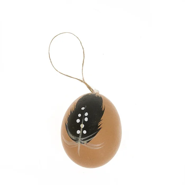 Украшение изготовлено из скорлупы и пера, что придаёт ему лёгкость. Упаковано в прозрачный блистер для удобства хранения и многократного использования.