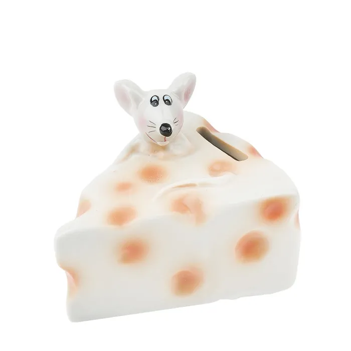 Декоративная фигурка-копилка «Мышь на сыре» торговой марки Monte Christmas сочетает функцию хранения монет с оригинальным дизайном. Изделие представляет собой детализированную фигурку мыши, сидящей на кусочке сыра.