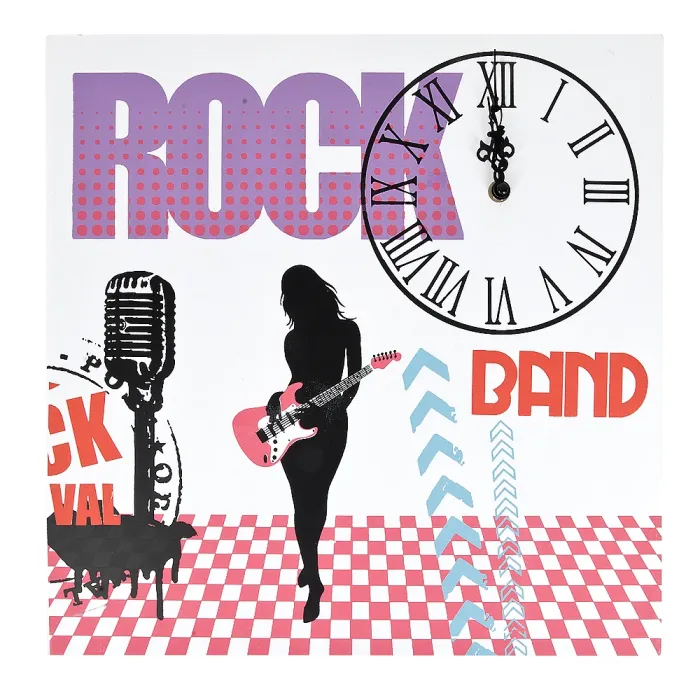 Декоративные настенные часы Rock-n-Roll квадратной формы. Работают от одной батарейки типа АА.