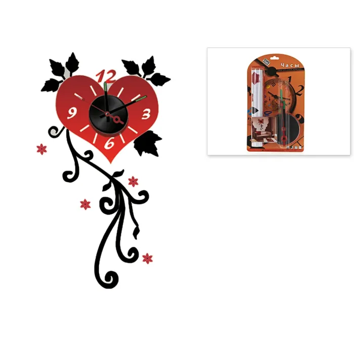 Часы настенные с декоративной наклейкой Большое сердце 10х10х3 см (батарейка- 1 АА в комплект не входит)