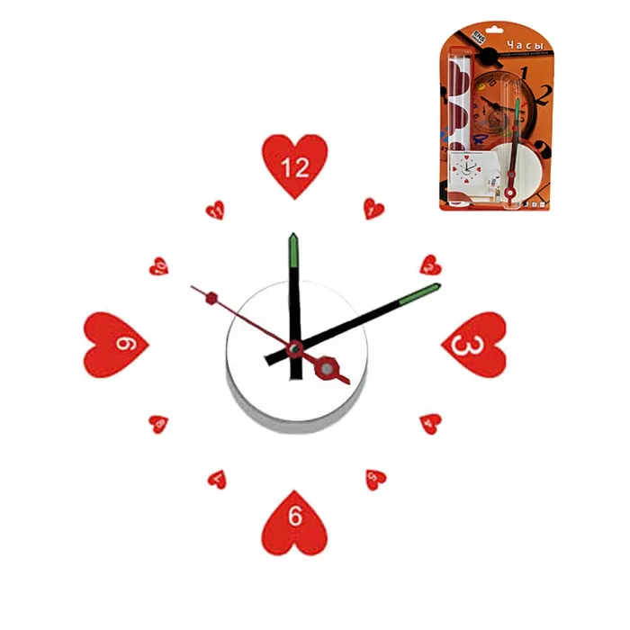 Часы настенные с декоративной наклейкой Сердечки 10х10х3 см (батарейка-1 АА в комплект не входит)