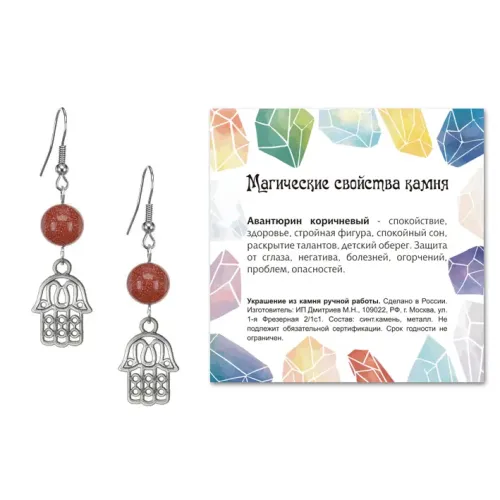 Серьги Хамса (от сглаза и зла), Коричневый авантюрин SEB07-01-01