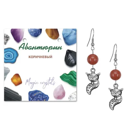 Серьги-амулеты коллекции MAGIC CRISTALS 2 с синтетическим камнем Коричневый авантюрин символизируют страсть и интуицию. Эти изысканные серьги не только дополнят любой образ, но и станут стильным аксессуаром для тех, кто ценит уникальные украшения.