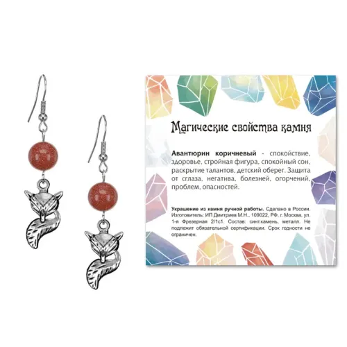 Серьги Лиса (страсть, интуиция), Коричневый авантюрин SEB07-01-03