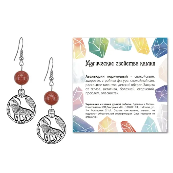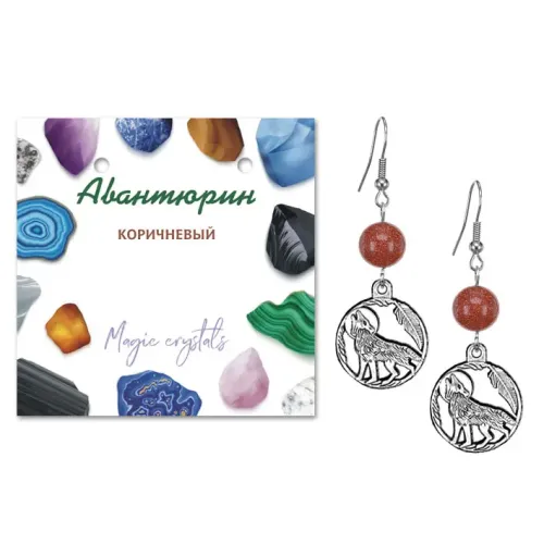 Серьги Волк (защита, сила, победа), Коричневый авантюрин SEB07-01-07