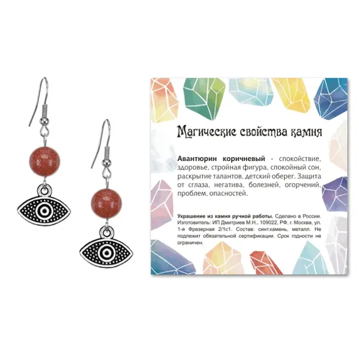 Серьги Глаз (от сглаза и порчи), Коричневый авантюрин SEB07-01-11