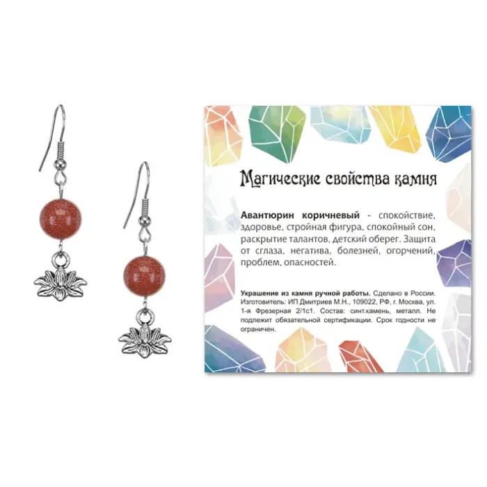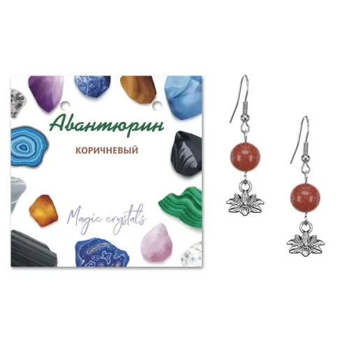 Серьги-амулеты коллекции MAGIC CRISTALS 2, выполненные с использованием синтетического камня Коричневый авантюрин, символизируют гармонию и развитие. Эти изысканные серьги станут не только стильным аксессуаром, но и источником вдохновения.