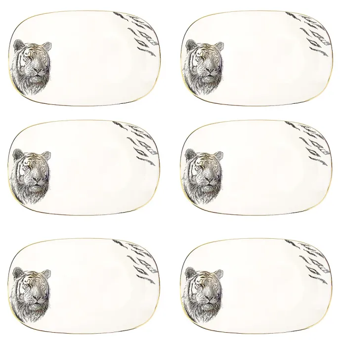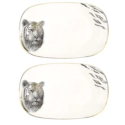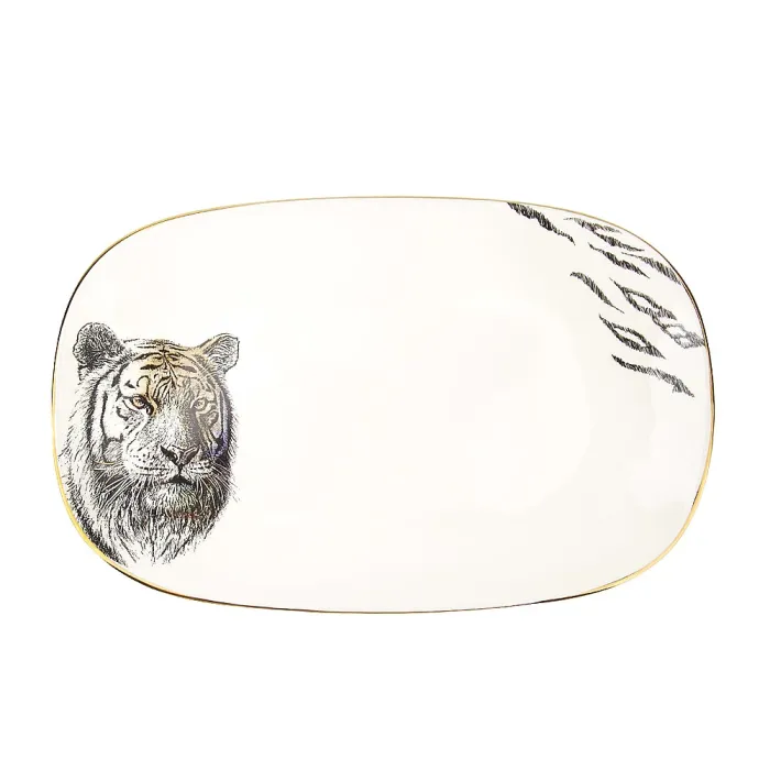 Сервировочное блюдо предназначено для подачи закусок, канапе или десертов. Изделие относится к коллекции «Саванна» и выполнено в колониальном стиле с детализированным изображением животных.