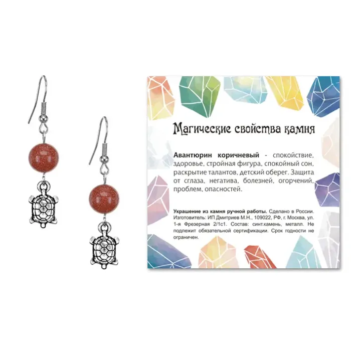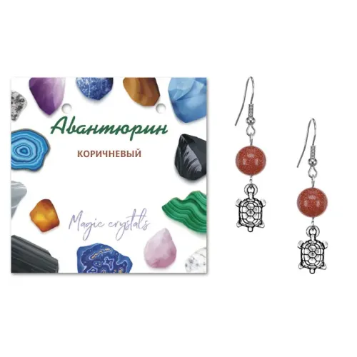 Серьги Черепаха (здоровье и долголетие), Коричневый авантюрин SEB07-01-16