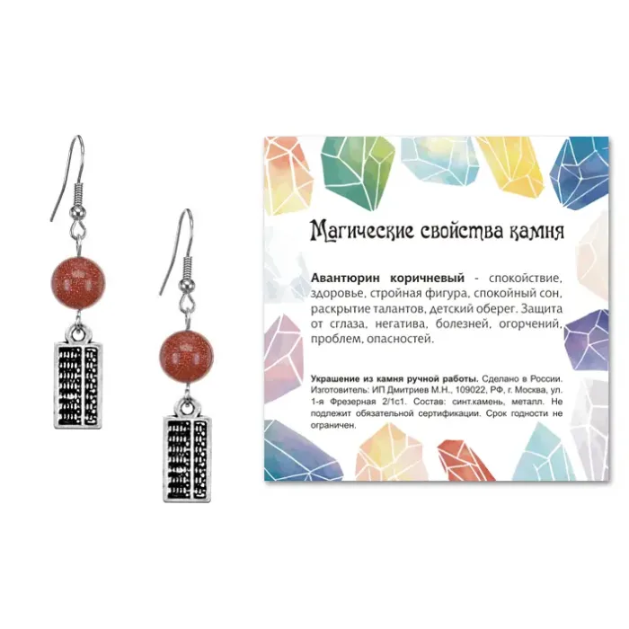 Серьги Счеты (богатство), Коричневый авантюрин SEB07-01-21